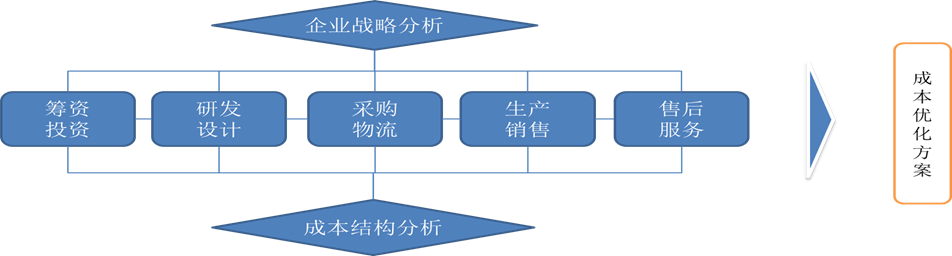 尚鸿圆咨询从战略成本管理的角度出发,通过问卷调研、访谈以及实地研究等方法,对企业进行内外部环境综合分析,总结企业特点,对比企业标杆,寻求匹配企业的成本管理模式,在此基础上,进一步对企业成本结构进行全面深入的分析,帮助客户进行流程梳理,明确成本重点控制环节,评估公司当前成本状况,阐明关键成本控制点的控制方法,帮助企业快速找到全局性的成本控制思路和方法,最终协助企业构建成本分析体系,提出科学有效的成本优化解决方案。
